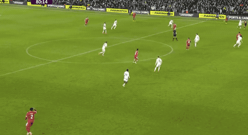 第80分钟,利物浦打出快速进攻,麦卡利斯特巧妙漏过,索博斯洛伊四两拨千斤,利物浦再次领先。